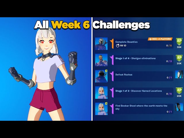 48 Top Photos Fortnite Week 6 Challenges Rec 4 Players / All Fortnite Week 9 Challenges And How To Complete Them Season 3 Digital Trends. These mostly feature xp and battle stars, but also feature an exclusive loading screen. This means players can complete the challenge with a little help. It's a daunting task, but we're going to show you an easy way to accomplish it, and why it says rec 4 players. Deal damage after knocking an opponent back with black panther's kinetic shockwave [rec: The chapter 2 season 5 week 6 epic quests are an exclusive chapter 2 season 5 set of challenges for battle pass chapter 2 season 5 that released on january 7th, 2021.