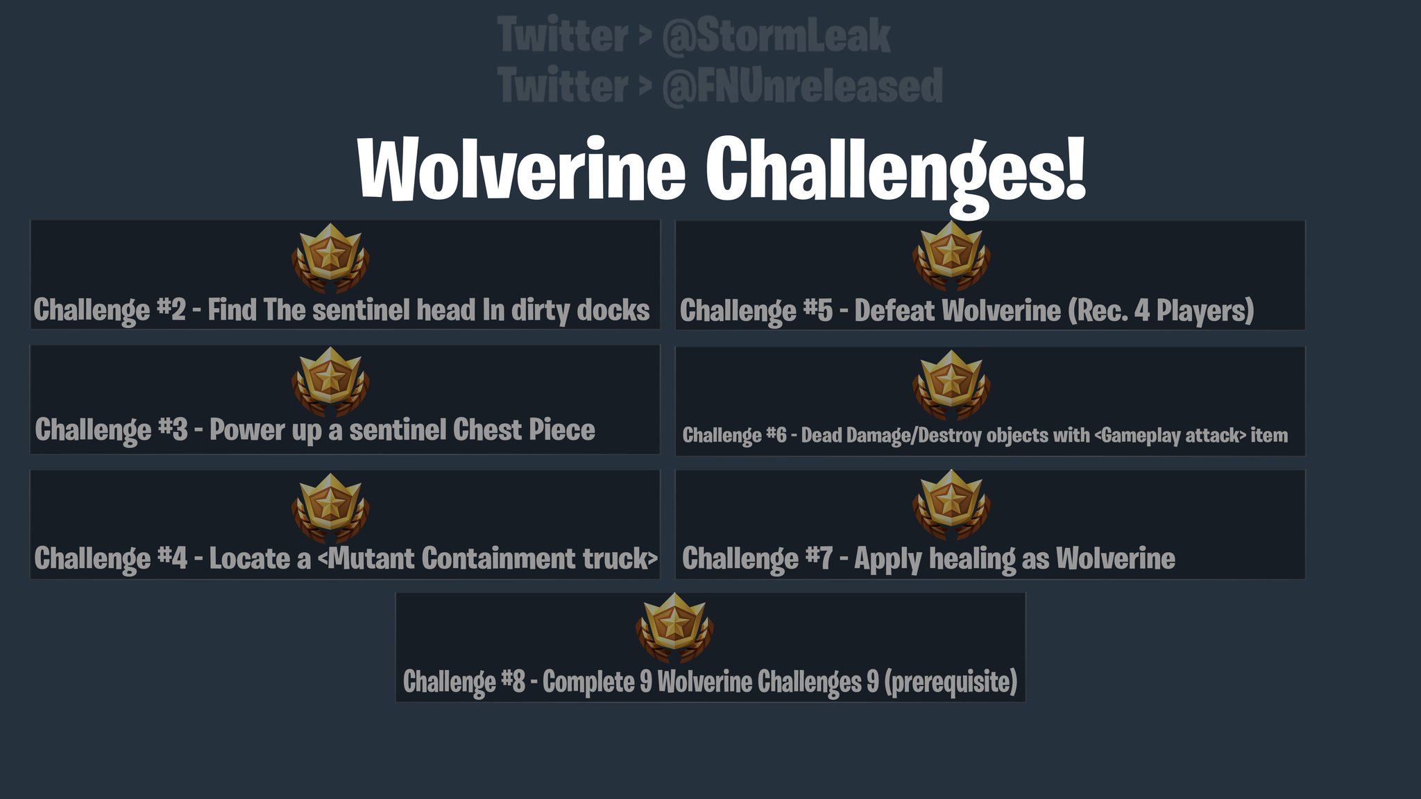 The one we are talking about is to search 100 chests (rec 4 players). Each week of challenges will offer something different from the last, and we will get new challenges every week until the season ends. It's time to get back into the battleground for a chance to show off to those other players your. Every week, the team over at epic games tasks fortnite players with a new set of challenges and with season 6 still going strong, week 4's challenges are now live to get started on a simple kind of grind. The challenges for this week are pretty basic, but the one that requires you to catch a legendary fish might have some players getting frustrated by the here's what you will see on thursday, october 1st when the challenges are released for the fortnite battle pass: So far, we have had the challenge to search 100 chests in week 6, and in week 7, we have the challenge to eliminate 50 players. The new weekly challenges for week six are available in fortnite. The second half of fortnite: Typically, the weekly challenges are leaked weeks in advance by fortnite data miners. In this guide, we'll tell you where the sheet music is located and what to do to complete this challenge, you must find a piece of sheet music and play it on a large piano nearby. Week 5 is the start of a new boss cycle with the kitty secret agent meowscles. Just be warned that it's going to be heaving with players when this challenge first goes live! That skin will look dope in some funny moments and plays!
